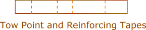 3. Make reinforcing tapes for both ends of the wing spars, nose and tail ends of the center sleeve, and a towing point tape. Ripstop folded 3 or 4 times is fine for small kites, and made double thick (two layers) for medium sizes.